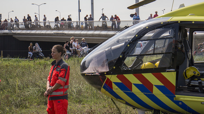 Donderdagmiddag werden omwonenden van de noordzijde van de Friesebrug opgeschrikt door een luid geronk. Het bleek te gaan om een traumahelikopter die vanaf het VU Medisch Centrum was vertrokken om te assisteren bij een incident bij de Wortelsteeg in Alkmaar.