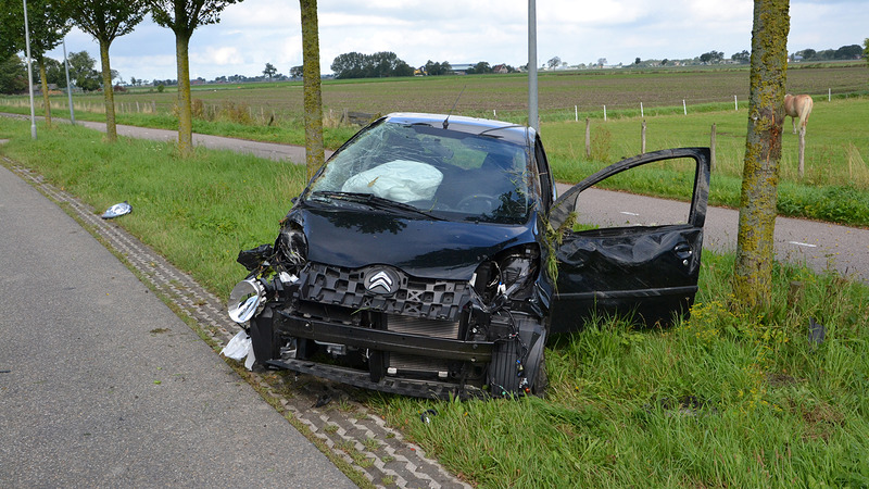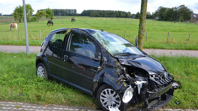 De vrouw is met onbekend letsel overgebracht naar het ziekenhuis in Alkmaar. De flink beschadigde auto is opgehaald door een berger. (foto's: DNP.NU/Douwe de Vries)