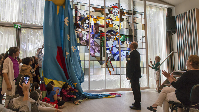 Vrijdagochtend is het volledig verbouwde Wijkcentrum Thuis in Overdie officieel geopend. Dit werd gedaan door wethouder Anjo van de Ven, samen met een leerlinge van basisschool De Wegwijzer, Gamar. Ze onthulden samen het glas-in-loodraam dat ooit de Don Boscokerk aan het Geert Groteplein sierde.