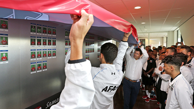 Voorafgaand aan de wedstrijd onthulden de aanvoerders van de jeugdelftallen in de centrale hal van het AFAS Stadion het jeugdbord, met daarop alle spelers uit de opleiding en de laatste (amateur-) vereniging waar ze hebben gespeeld.