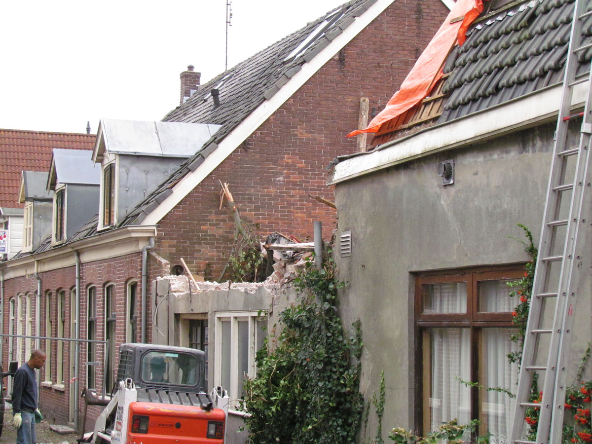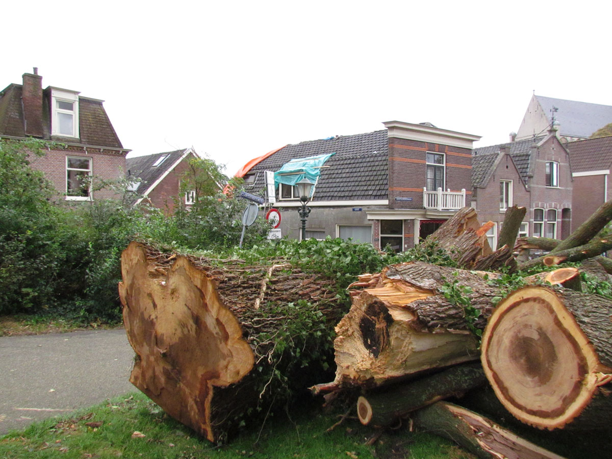 Alkmaar, 14 september 2011. De omwonenden waren er al bang voor en maandagmiddag ging het dan inderdaad mis. De grote iep aan het Clarissenbolwerk in Alkmaar was niet bestand tegen de harde wind en gaf het op met een enorme ravage als gevolg. De boom kwam op een huis terecht, enorme schade veroorzakend. De 86-jarige bewoonster was gelukkig op dat moment niet thuis. Acht jaar geledenis de bliksem in de iep geslagen en ging het achteruit met de boom. Reden voor de omwonenden om de gemeente te vragen de boom weg te halen. Er was wat overredingskracht voor nodig maar de gemeente had toegezegd om een expert langs te sturen om te kijken of die het eens was met de omwonenden die de boom niet meer vertrouwden. Helaas is dat nu niet meer nodig. Hieronder een aantal foto's die aangeven hoeveel schade er is, waar de boom stond, hoeveel boom het was en dat de boom inderdaad aan het aftakelen was.