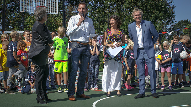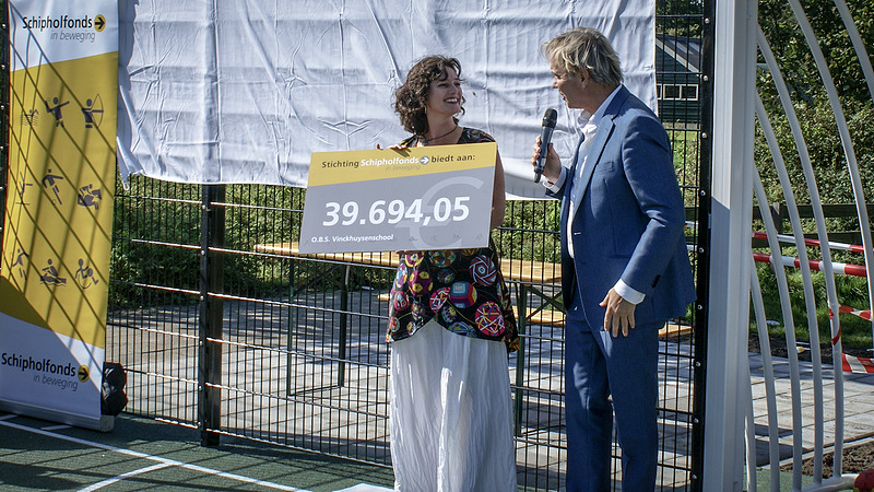 Afgelopen vrijdag opende Studio Sport-presentator Tom Egbers het nieuwe sportveld achter de Vinckhuysenschool in West-Graftdijk. Het sportveld is tot stand gekomen dankzij een donatie van 39.694 euro van het Schipholfonds, waar Egbers voorzitter van is.