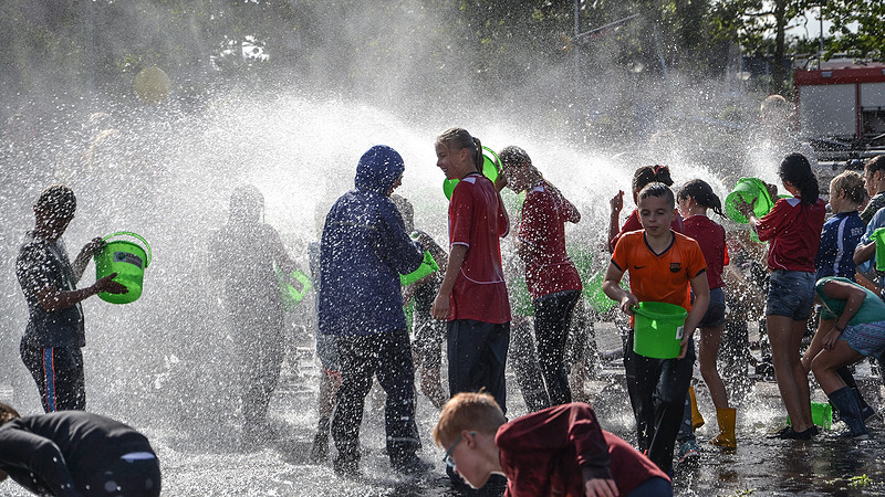 Het mooie weer zorgde ervoor dat er een nog best verhitte strijd werd gevoerd, maar alle zweetdruppelds werden gemaskeerd door het overvloedig in het rond spattende 'bluswater'. De prestaties van de kinderen waren groot, maar de beleefde pret nog veel groter.
