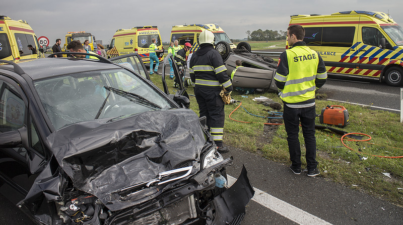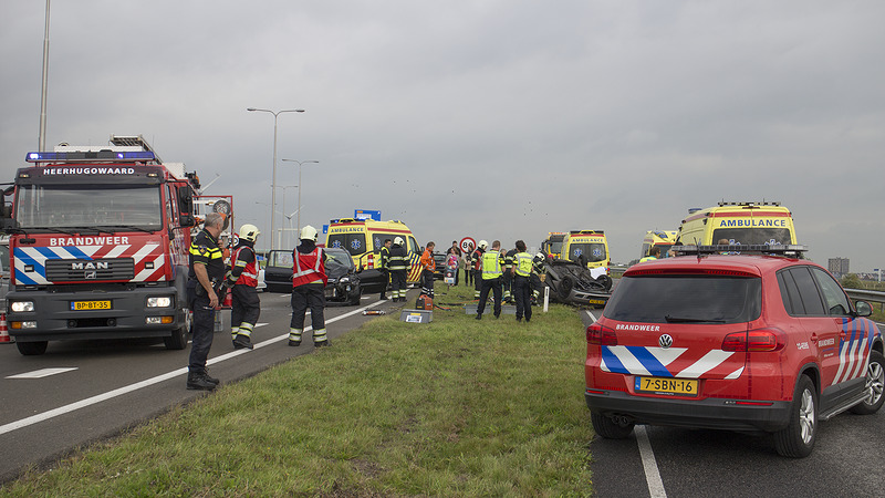 Die maakte daardoor een koprol en bleef daarna op de kop liggen. Door de schade zat de automobiliste van de over de kop geslagen auto beklemd en moest ze door de brandweer bevrijd worden. Die heeft haar via de achterklep en met behulp van een zogenaamde 'plank' uit het wrak gehaald, waarna ze met een ambulance naar het ziekenhuis is gebracht. In de Opel Zafira zaten twee volwassenen, een kind en een baby. Zij lijken er met lichte verwondingen maar forse schrik vanaf te zijn gekomen. Ze zijn nog wel ter controle naar het ziekenhuis gebracht.