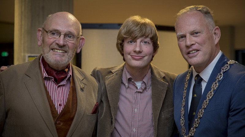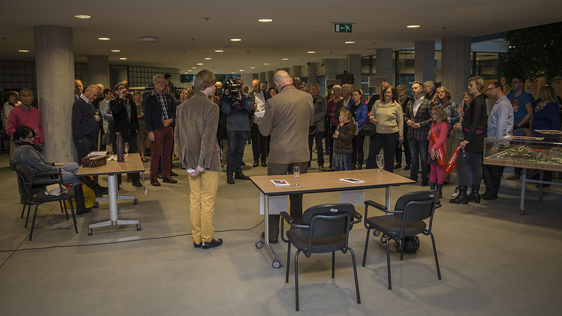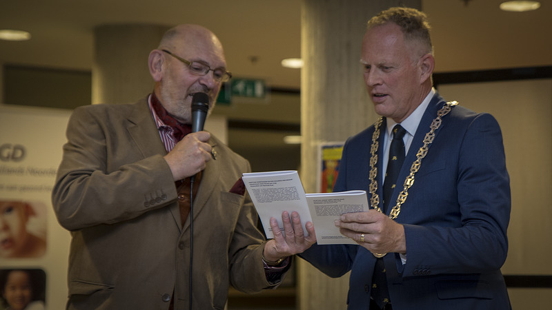 Sinterklaas is dan wel nog niet in het land, maar vrijdagavond vond in de hal van het gemeentehuis van Heerhugowaard al de boekpresentatie van de twee verhalenbundels met elk vijftig verhalen “Vijftig keer Sint Nicolaas” en “Prettige Kerstdagen en een gelukkig nieuwjaar” plaats. De verhalen zijn in de loop van tientallen jaren geschreven door toneelschrijver Ruud van Ling en de bundels zijn geïllustreerd door kunstenaarsstudent Berend Post. Een tentoonstelling van Berends andere werken is nog drie weken te zien in het gemeentehuis. Na het openingswoord door Van Ling en het voorlezen van een van de verhalen mocht burgemeester Han ter Heegde de eerste exemplaren van de boeken in ontvangst nemen.