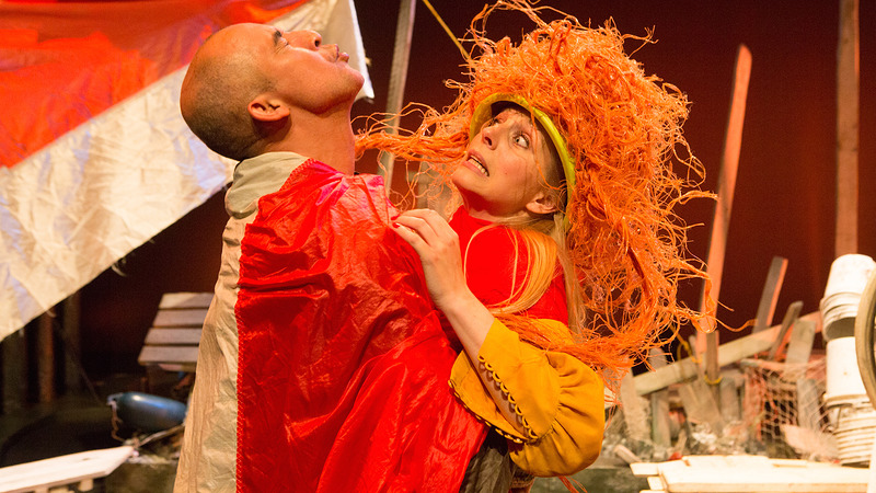 Het publiek wordt er dus om de zoveel tijd aan herinnerd dat het verhaal eigenlijk een spel is van vier kinderen die op het strand spelen, maar volgens Sabine is dat juist niet ontgoochelend, want “ze kennen vaak het verhaal wel, maar het is wel leuk dat ze zien dat je het zelf kunt doen. In plaats van terughalen naar de werkelijkheid is het een bouwsteen om door te kunnen met de fantasie”.