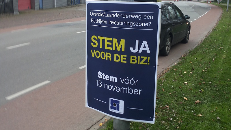 Al enkele weken staan overal langs de weg reclameborden die ondernemers oproepen te gaan stemmen voor de BIZ. Maandagochtend waren ze op industrieterrein Overdie/ Laanenderweg ineens allemaal weg. Op camerabeelden van Spyke Security kwam de dader in beeld: een ambtenaar van Stadstoezicht. Zondagochtend haalde hij de borden weg, naar later bleek, in de veronderstelling dat ze er illegaal stonden.