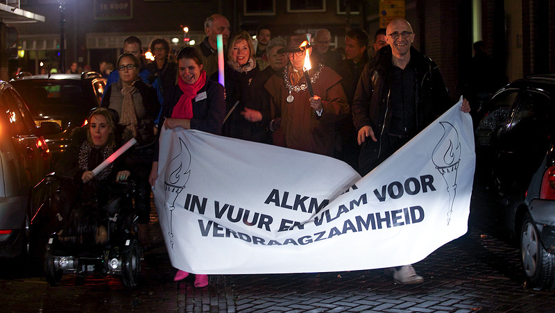 Verdraagzaamheid en respect. Vanuit die kernwoorden werd zaterdagavond in Alkmaar een fakkeltocht gelopen. Voor veel mensen een mooi moment om hun betrokkenheid te tonen aan een verandererende en ogenschijnlijk steeds harder wordende wereld. Om te laten zien dat je met respect om wil gaan met anderen en iedereen gelijke kansen gunt.