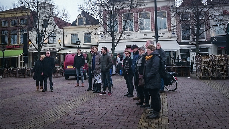 Voor veel mensen was het in verband met andere verplichtingen niet mogelijk naar het Waagplein te komen, zo valt op Facebook te lezen. Anderen wisten het helemaal niet en lieten achteraf weten graag te zijn gekomen. Toch stonden er klokslag twaalf uur zo'n dertig mensen op het Waagplein. De door Joke meegebrachte Nederlandse vlaggen werden omgedraaid om zo de Franse driekleur te vertegenwoordigen.