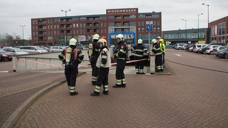 De brandweer heeft dinsdagochtend bij winkelcentrum Middnwaard de parkeergarage bij Albert Heijn afgesloten na twee brandmeldingen. De eerste kwam automatisch bij de brandweer binnen, de tweede via een zogenoemde 'handmelder' Eenmaal ter plaatse sloot de brandweer de parkeergarage af nadat vastgesteld was dat er flink wat rook en een 'verbrand rubber' lucht hing.