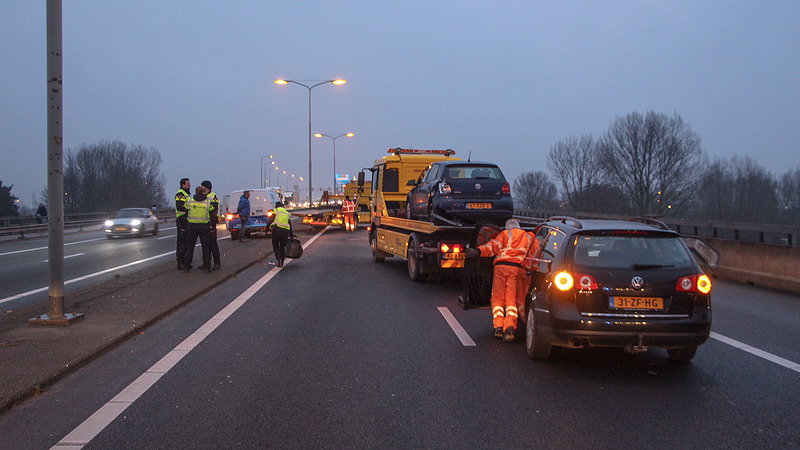 De bestuurder van de achterste auto is na klachten door ambulancepersoneel ter plaatse nagekeken maar hoefde uiteindelijk niet mee naar het ziekenhuis. Omdat het incident plaatsvond in de ochtendspits en er maar één rijstrook beschikbaar was stroomde de Nollenweg al snel vol en ontstond er vertraging voor het overige verkeer. (foto's: DNP.NU)