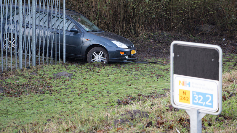 Een automobilist kwam zaterdag rond 09:45 uur met de schrik vrij, toen hij met zijn auto nabij De Boer Tenten het talud afschoot van de Provincialeweg (N242).