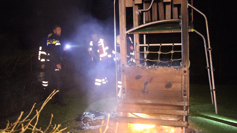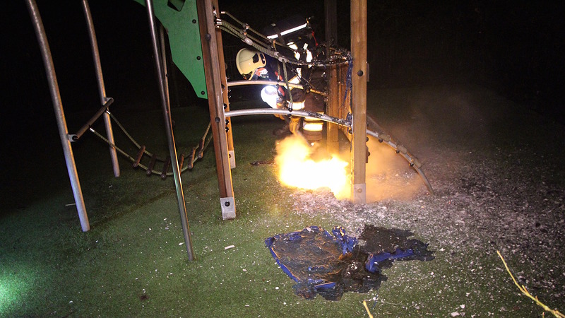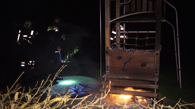 Door het vuur zijn diverse touwen en houten onderdelen van het speeltoestel verbrand. Het is niet duidelijk hoe de dader hieraan plezier heeft kunnen beleven.