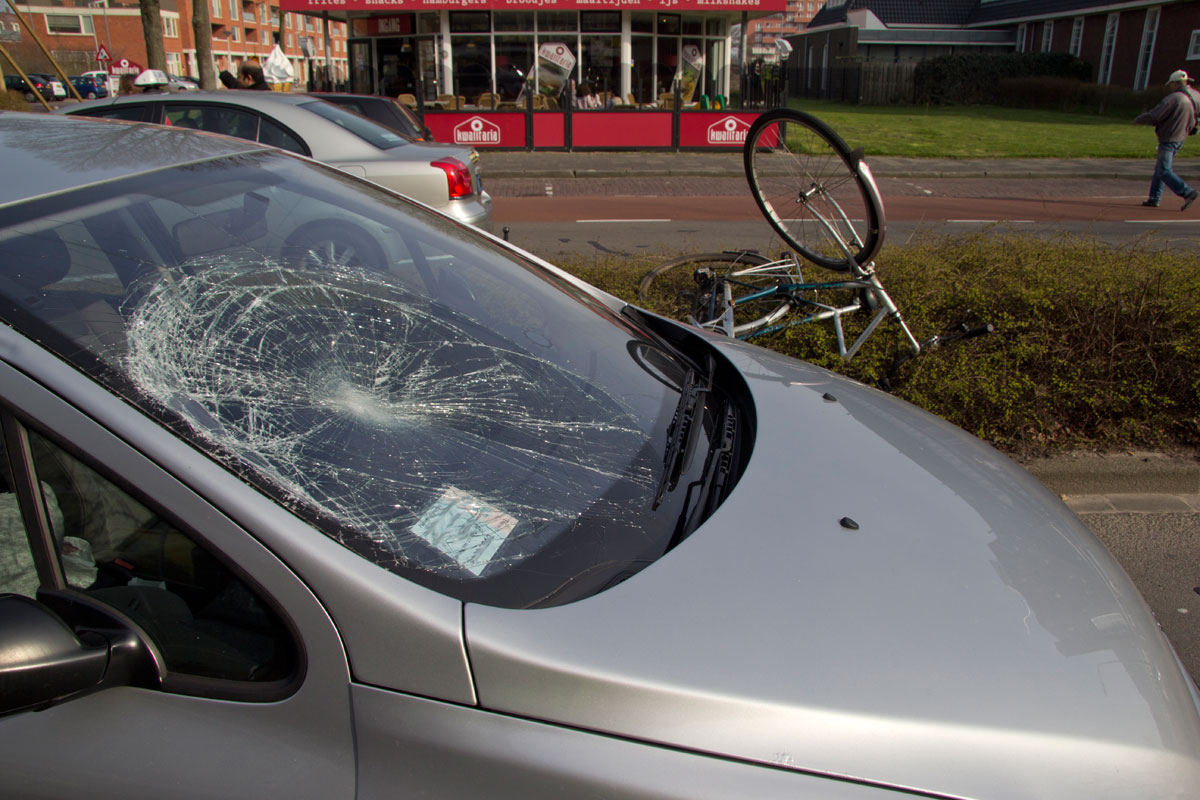 Alkmaar, 27 maart 2012. Dinsdagmiddag is fietser gewond geraakt bij een aanrijding met een auto. de fietser stak de Vondelstraat over op de kruising met de Hooftstraat/Schaepmankade en heeft de auto Γ³f niet gezien Γ³f gedacht dat de automobilist zou stoppen. de automobilist heeft in ieder geval de fietser niet gezien en hem met volle snelheid geraakt. De fiets zat als gevolg van de klap verwrongen in de gril van de Peugeot. Vanwege de ernst van het ongeval is er een traumateam opgeroepen, maar dat hoefde niet ter plaatse te komen. De fietser is met hoofdletsel naar het ziekenhuis gebracht, de dienst verkeers Ongevallen Analyse van de politie doet onderzoek naar de toedracht van het ongeval.