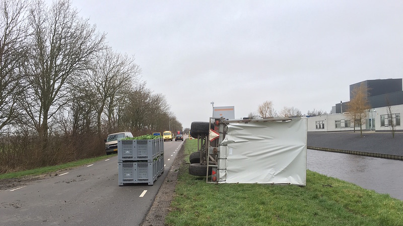 Vrijdag zouden langs de Spanjaardsdam in Langedijk net de eerste bakken vers geplukte boerenkool in de aanhanger worden gezet toen deze werd gegrepen door de harde wind. De aanhanger kwam door de windvlaag op zijn zijkant in het gras langs de weg terecht.