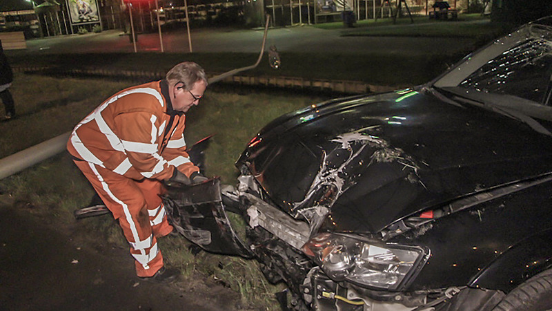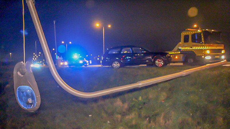 De automobilist is met een ambulance naar het MCA gebracht. de auto is door de berger afgevoerd. Een medewerker van de provincie heeft de lantaarnpaal op een veilige plek gelegd waarna later de kapotgetrokken bedrading ook weer veilig is afgewerkt. (foto's: DNP.NU)