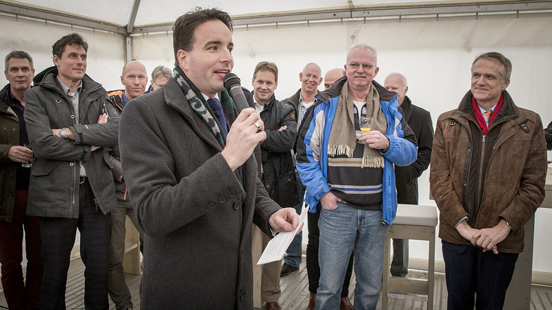Wethouder van Langedijk Jasper Nieuwenhuizen trapte de werkzaamheden af door met een graafmachine grond af te graven en in een grote kiepwagen te gooien. Die werd bediend en bestuurd door wethouder van Alkmaar Pieter Dijkman, die de grond naar de andere kant van de weg bracht en daar dumpte. Beide wethouders werden daarbij nauwlettend in de gaten gehouden door een grote delegatie genodigden.
