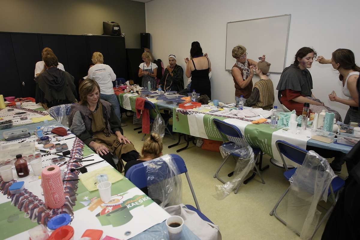 Alkmaar, 16 juni 2012. Duizenden mensen lieten zich vandaag weer door de straten van het Alkmaar van 1573 voeren. In d'Oude Stad is vanmorgen om 11.00 uur Kaeskoppenstad officieel door burgemeester piet Bruinooge geopend. Hij had daarvoor ook de burgemeesters van Graft-De Rijp en Schermer uitgenodigd. Maar voor de figuranten en mensen van de make-up as de dag al veel eerder begonnen, zij waren om 07.00 al in touw om de 700 figuranten een make-over te geven zodat iedere bezoeker zich ook echt in het Alkmaar van de Victorie zou wanen. Alkmaar Centraal fotograaf Marco Schilpp dook in het verleden en maakte deze mooie en uitgebreide Kaeskoppenreportage