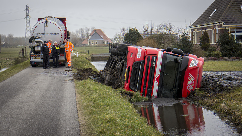 Dinsdag rond 12:45 uur is in Starnmeer een grote vrachtwagen met mestcontainer in de sloot beland. De chauffeur reed over de smalle Middelweg richting de N246, toen hij even niet oplette en met links in de berm kwam. Het gevaarte was niet te houden en viel om. Een getuige heeft de man, nadat deze ongedeerd uit de wagen klom, even in zijn auto laten bijkomen.