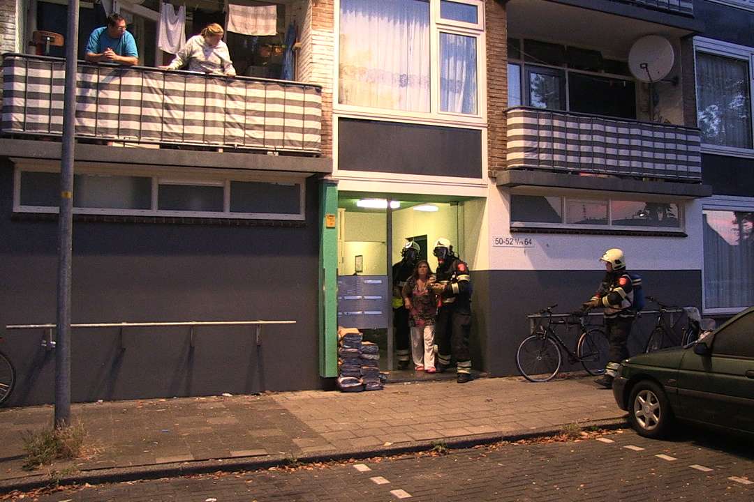 Alkmaar, 09 september 2012. Bewoners van een flat aan de Mesdaglaan in Alkmaar waren glad vergeten dat er een pannetje met olie op het vuur stond. En toen de olie helemaal verbrand en verdampt was stond niet alleen de woning, maar ook het trappenhuis vol rook. De bewoners van de acht woningen die aan dat trappenhuis grenzen moesten omdat de rook ook hun woning binnenkwam even na 06.15 uur naar het balkon. Het bewustje pannetje was inmiddels buiten gezet waardoor brand kon worden voorkomen. Toen moest worden bekeken of en hoe de getroffen bewoners van de balkons gehaald konden worden.Β De brandweer heeft de bewoners van de flat waar het pannetje stond met behulp van een reddingsmasker naar beneden gelopen.