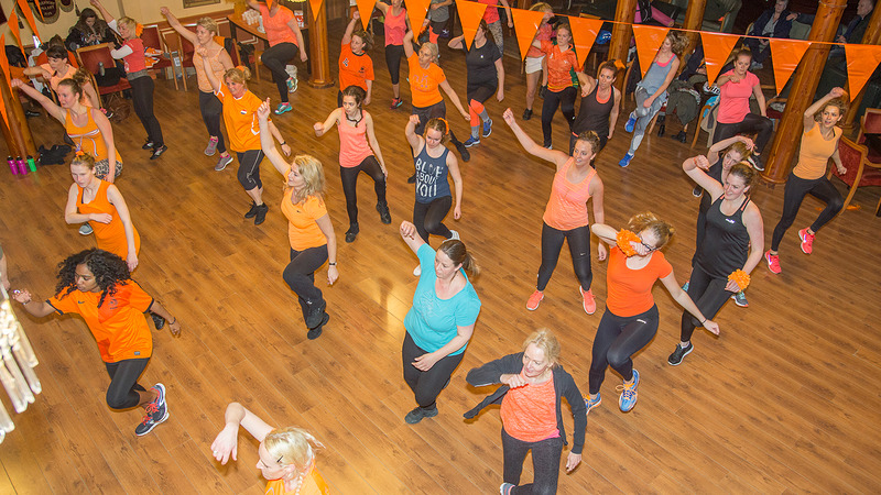 Er werden tijdens de Zumba en Shape Marathon diverse lessen gegeven waaraan totaal 36 deelnemers fanatiek deelnamen, gekleed volgens het thema Oranje Boven. Het was dus een vrolijke swingende avond.