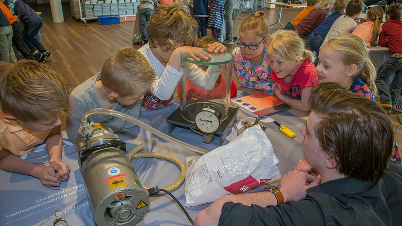 Studenten van de UVA waren naar De Rijp gekomen om groepjes leerlingen, met allerlei proefjes, meer over techniek te leren. Hoe het zit met luchtdruk, zwaartekracht, trillingen, evenwicht, en nog veel meer werd door de studenten op een leuke manier uitgelegd en de leerlingen vonden het maar wat leuk en interessant