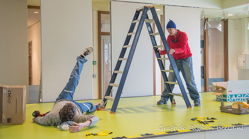 De themaweek moest maandag natuurlijk officieel geopend worden met het doorknippen van een lintje. Omdat het ophangen van zo’n lintje echt vakwerk is, had De Balein 'Buurman en Buurman' uitgenodigd. En dat ging natuurlijk niet helemaal goed. Maar gelukkig kon juf Tineke toch nog het lintje knippen en ging de techniekweek echt van start.