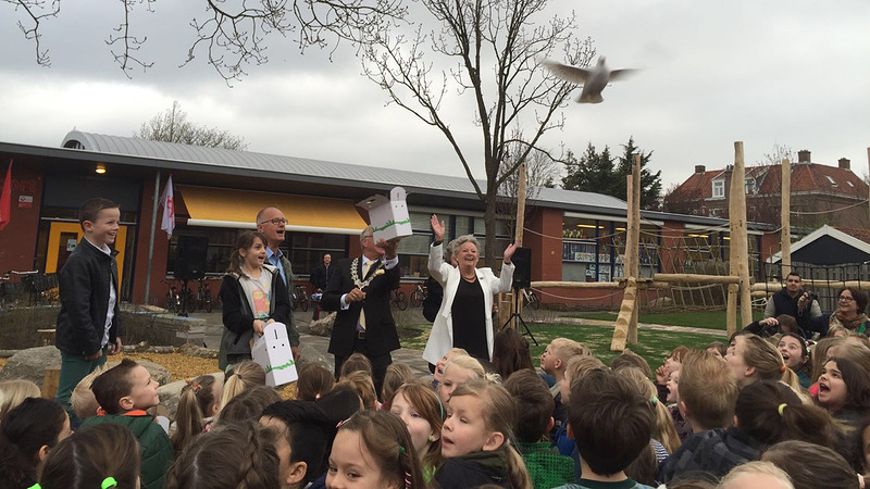 Dinsdag werd het Gezonde Speelplein van OBS De Kennemerpoort geopend tijdens de eerste landelijke Buitenlesdag 2016, waaraan meer dan 100 scholen meededen. Burgemeester Piet Bruinooge kon natuurlijk geen 'nee' zeggen op het verzoek van de kinderen om het plein officieel te openen. Hij nam zelfs wethouder Elly Konijn mee.