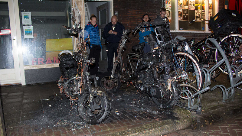 Uit voorzorg zijn de bewoners boven op het balkon gaan staan. Mocht het echt fout gaan dan konden ze toch wegkomen. Zover kwam het gelukkig niet omdat de brandweer snel ter plaatse was om de brandende scooters, en inmiddels ook een fiets, te blussen.