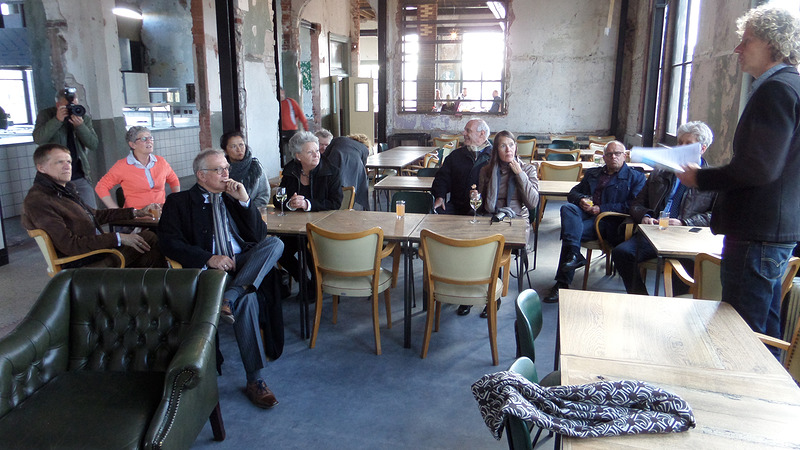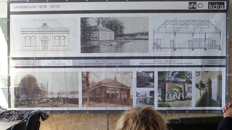 Dinsdag verzamelde het college zich bij het IJkgebouw in het Victoriepark om te kijken hoe de renovatie van het pand vorderde. Architect John Kerssens van KDRA vertelde over de levens die het pand al gehad heeft en over de enorme uitdagingen van het project.