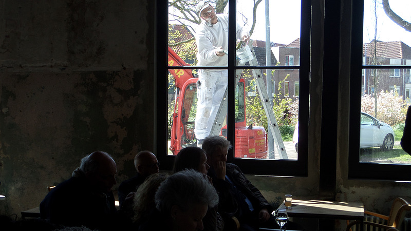 De renovatie startte in november en moest 1 mei klaar zijn. "Dat lukt nooit", hoorde Vasbinder, maar het lijkt van wel. Tijdens de bijeenkomst werd ook gewoon doorgewerkt.