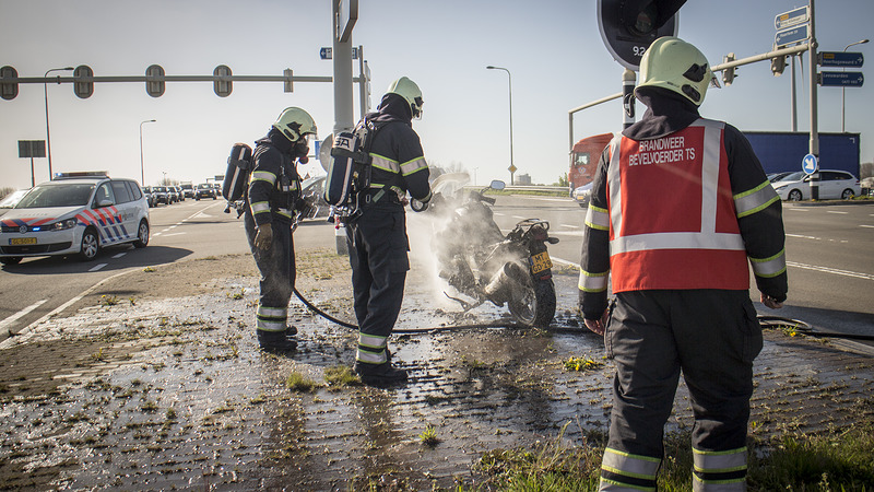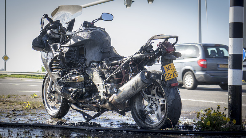 Ter hoogte van de afslag naar de Middenweg werd het de motorrijder echter letterlijk te heet onder de billen en zette hij de motor op de vluchtheuvel. De motor stond toen al in brand waarna hem slechts een telefoontje naar de hulpdiensten restte. De brandweer heeft de vlammen gedoofd en de uit de volle tank lekkende benzine verdund om te voorkomen dat er weer brand zou ontstaan. De motor moet als total loss worden beschouwd.
