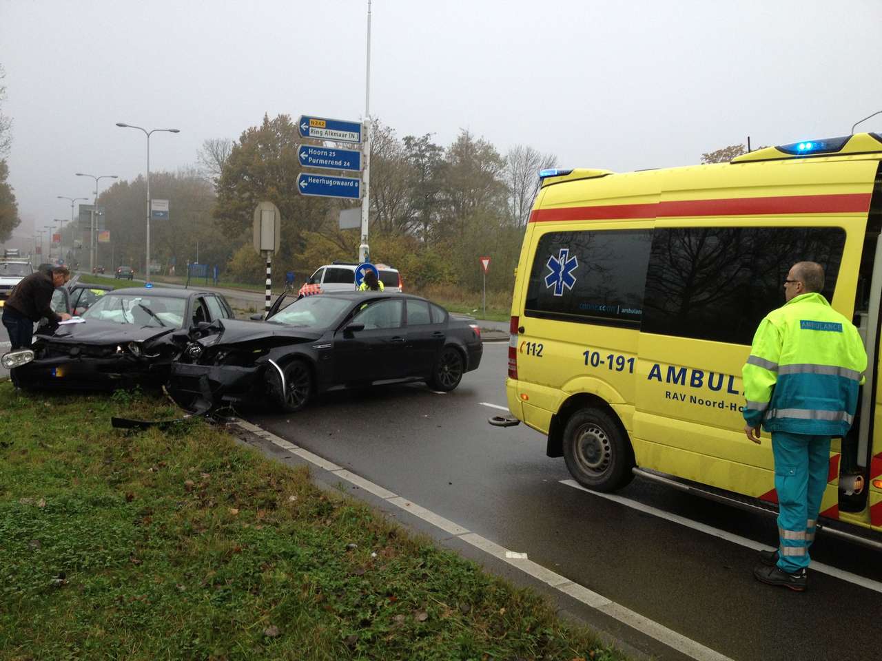 Alkmaar 10 november 2012. Zaterdagochtend zijn rond kwart voor elf twee auto's tegen elkaar gereden. Dat gebeurde op de Diamantweg op industrieterrein Boekelermeer. Eén van de auto's, een zwarte BMW, kwam Ommering afrijden en de bestuurder wilde onderaan de afrit links afslaan richting Overdie. De bestuurder van de andere auto, een Volkswagen Golf, reed al op de Diamantweg en wilde ook richting Overdie. Maar op de met verkeerslichten uitgeruste kruising raakten ze elkaar. De blikschade die ontstond was aanzienlijk en één van de bestuurders werd ter plekke door het ambulance personeel nagekeken. Hij hoefde echter niet mee naar het ziekenhuis. De af- en oprit bij de Ommering/Diamantweg is enige tijd afgesloten geweest totdat beide beschadigde auto's waren afgevoerd. De politie onderzoekt welke van de twee automobilisten het rode verkeerslicht heeft genegeerd.