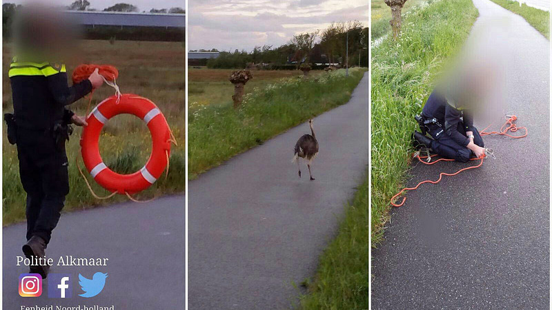 In de nacht van zondag op maandag keken collega’s raar op toen op de Bergerweg in Alkmaar aankwamen, na melding van een loslopende struisvogel. De vogel, die later een nandoe bleek te zijn, was behoorlijk snel en rende weg. De agenten wisten de nandoe in te sluiten en te vangen met hun reddingsboei.