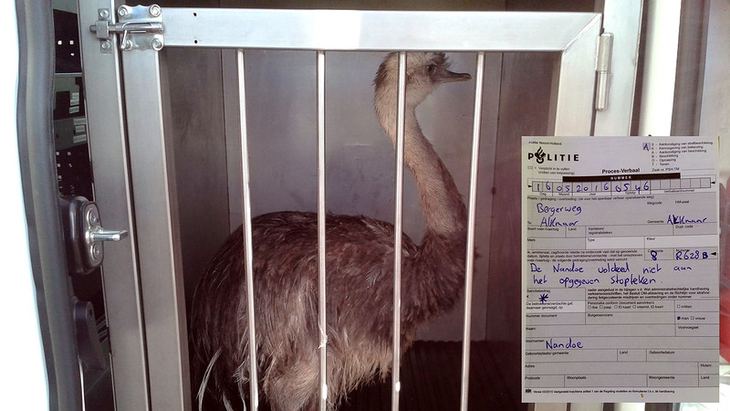 Op Facebook grapt de politie dat de nandoe twee bekeuringen kreeg; voor het negeren van het gegeven stopteken en de snelheidsovertreding op het fietspad. Daarna een foto van de dierenambulance met het dier 'in hechtenis' (met bekeuring van de politie) en een foto van de eigenaren van de nandoe.