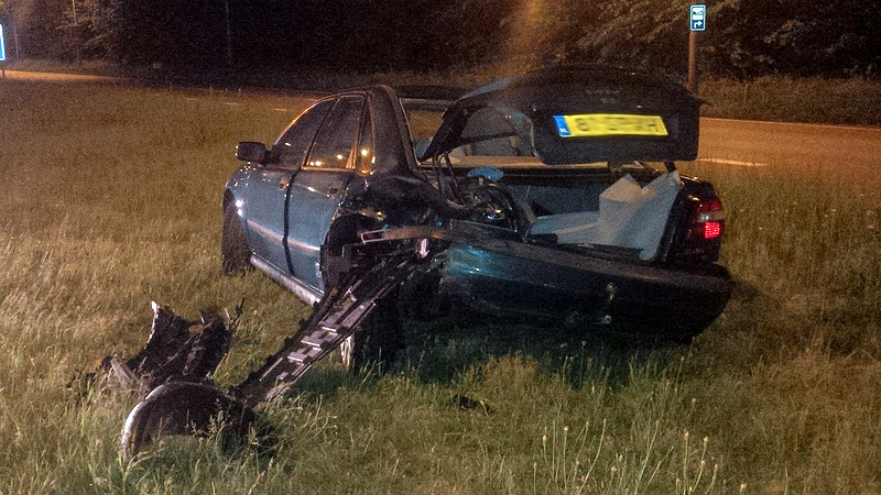 De Volvo raakt door de klap van de weg af en komt in de middenberm terecht. De achteropkomende auto raakt in de slip, klapt tegen een lataarnpaal, en slaat over de kop. Beide bestuurders konden zelf het voertuig verlaten, maar de bestuurder van het achterste voertuig is met onbekend letsel naar het ziekenhuis gebracht, hij had in verband met zijn (beperkte) lengte geen autogordel om. Mogelijk is er sprake van alcoholgebruik.