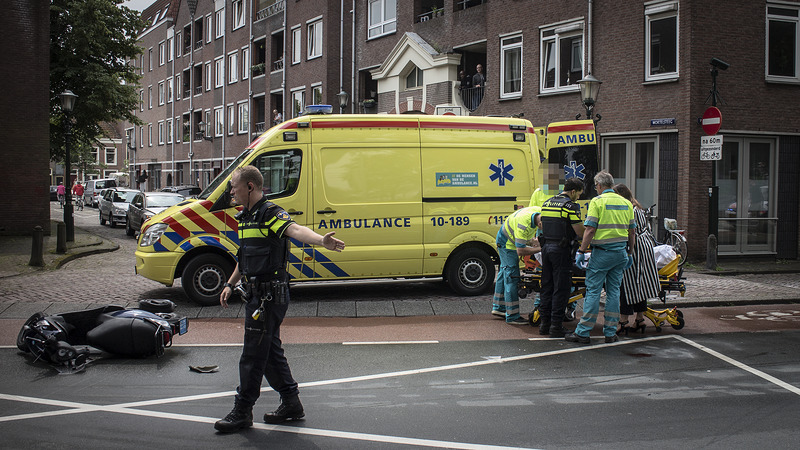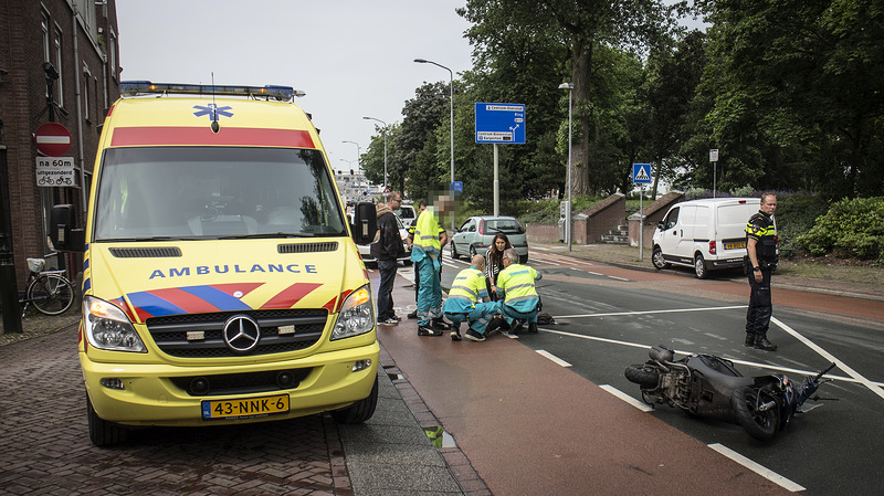 Een jonge vrouw is dinsdagmiddag gewond geraakt aan haar hoofd toen ze op de Wageweg ten val kwam met haar scooter. Wat er precies is gebeurd is nog niet duidelijk, de bestuurder van een bestelbus wilde vanaf de Wortelsteeg de Wageweg opdraaien toen hij achter zich een klap hoorde.