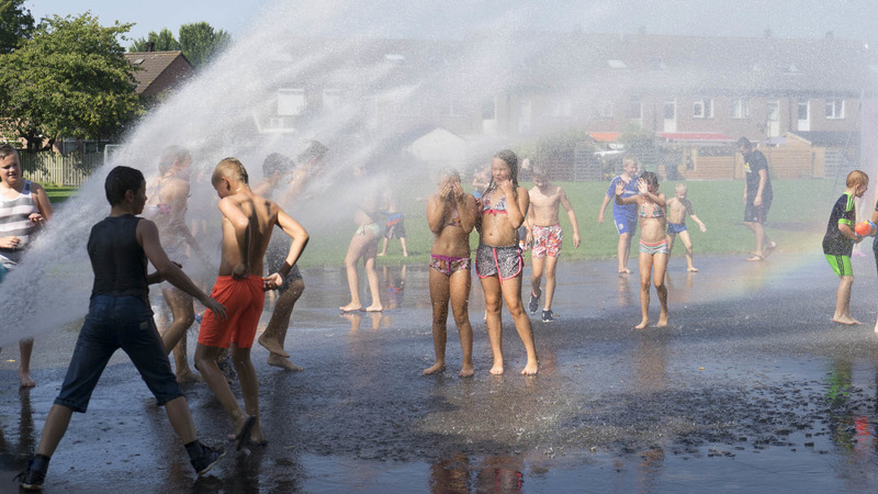 Woensdagmiddag kwam bij basisschool De Burijn de brandweer langsΒ om de leerlingen wat verkoeling te bezorgen. Het kwik reikte ver boven de temperatuur waarbij het nog aangenaam is om in een klaslokaal te zitten en de leerlingen waren dringend aan wat verfrissing toe. Gekleed in zwembroek en bikini lieten de leerlingen zich natspuiten en vermaakten ze zich bij de brandslangen.