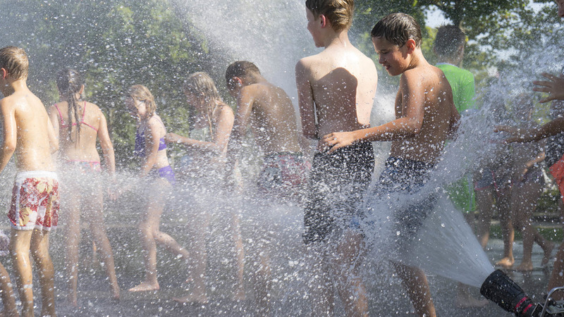 Woensdagmiddag kwam bij basisschool De Burijn in Koedijk de brandweer langs om de leerlingen wat verkoeling te bezorgen. Het kwik reikte ver boven de temperatuur waarbij het nog aangenaam is om in een klaslokaal te zitten en de leerlingen waren dringend aan wat verfrissing toe. Gekleed in zwembroek en bikini lieten de leerlingen zich natspuiten en vermaakten ze zich bij de brandslangen.
