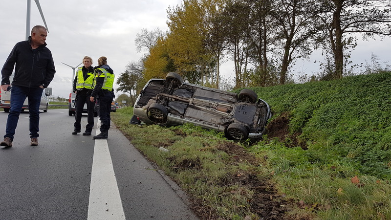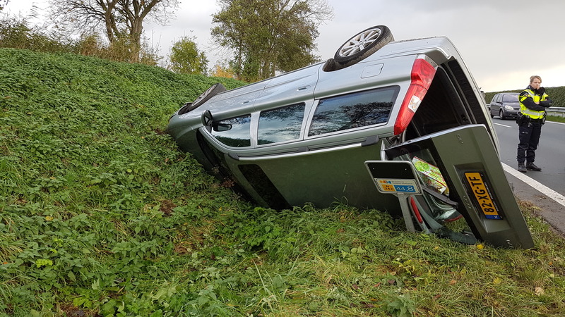 De automobilist is met een ambulance naar het ziekenhuis gebracht. Zijn verwondingen leken vooralsnog mee te vallen.