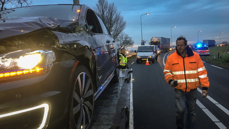 Ook bij de vrachtwagenchauffeur, wiens zoontje meereed in de vrachtwagen, zat de schrik er flink in. Er zijn geen gewonden gevallen, maar de materiële schade is fors.