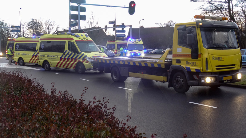 Op de kruising van de Laan van Straatsburg en de N245 (Huiswaarserweg) in Alkmaar zijn zaterdagmiddag drie mensen gewond geraakt. Een Mitsubishi personenauto kwam hard in aanraking met een Volkswagen bestelbus, waarschijnlijk omdat één van beide bestuurders een rood verkeerslicht over het hoofd heeft gezien.