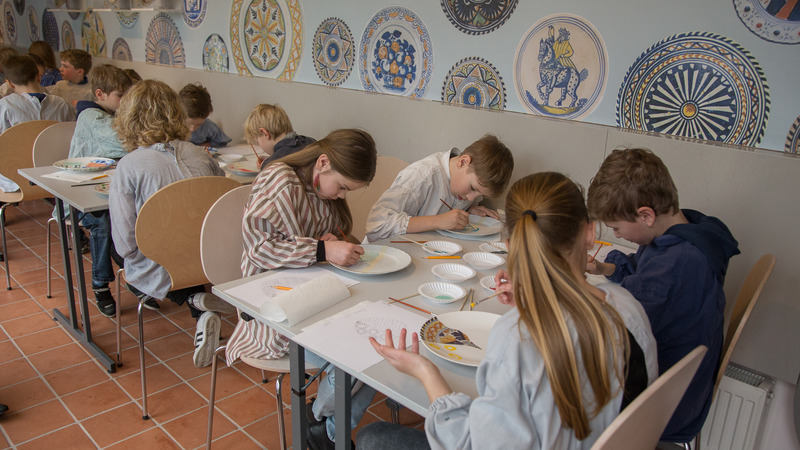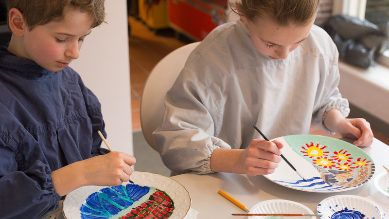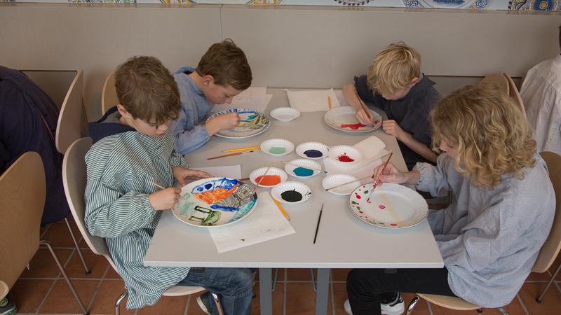 Woensdagmiddag was het gezellig druk bij Museum In 't Houten Huis in De Rijp. Kinderen tussen de 6 en 12 jaar waren bij elkaar gekomen om onder leiding van ontwerper Esther Derkx een majolica bord te maken. Ze mochten hun bord, wat bij een aantal al deels beschilderd was, helemaal zelf ontwerpen en beschilderen.