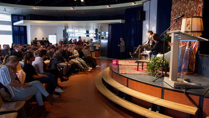 Gisteren bezocht minister Jeroen Dijsselbloem InHolland voor een gesprek met de studenten. "Alles wat zij willen weten over politiek bedrijven, carrière maken en hun portemonnee kunnen zij in een ‘collegetour-setting’ vragen aan minister Dijsselbloem", zo rept de pers aankondiging. De minister oogde uitermate ontspannen en had geen moeite om daarnaast ook in te antwoorden op meer persoonlijke vragen.