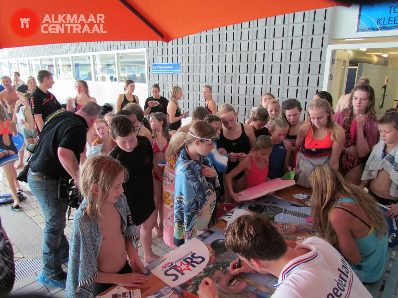 Na de clinic was er ruim de tijd om handtekeningen te krijgen van Inge en Sebastiaan. Naast de grote posters, waarvan iedereen er eentje mee mocht nemen, werd er van alles on de neuzen van de Stars geschoven; van telefoonhoesjes tot drijvers. Een oudere deelnemer besloot zelfs zijn bovenlichaam met viltstift onder te laten schrijven. En natuurlijk kon iedereen met Inge en Sebastiaan op de foto. Het was een onvergetelijke dag voor alle aanwezige zwemliefhebbers.Β Swimming with the Stars was een initiatief van Alkmaar Actief. Dit is een samenwerkingsproject tussen de gemeente Alkmaar, zwembad De Hoornse Vaart en zwemvereniging DAW met als gezamenlijk doel talentontwikkeling en meer inwoners in beweging in het water. Verslaggever Robin Korving was er bij maakte dit (foto-)verslag.