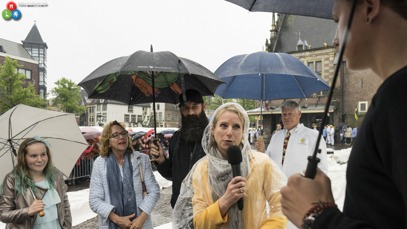 Helaas zat het voor de zangtalenten, en ook het publiek rond de kaasmarkt, niet bepaald mee met het weer. Er kwam een flinke hoeveelheid water uit de hemel. Toch was fotograaf Marco Schilpp weer van de partij, want regen kan ook mooie beelden opleveren.