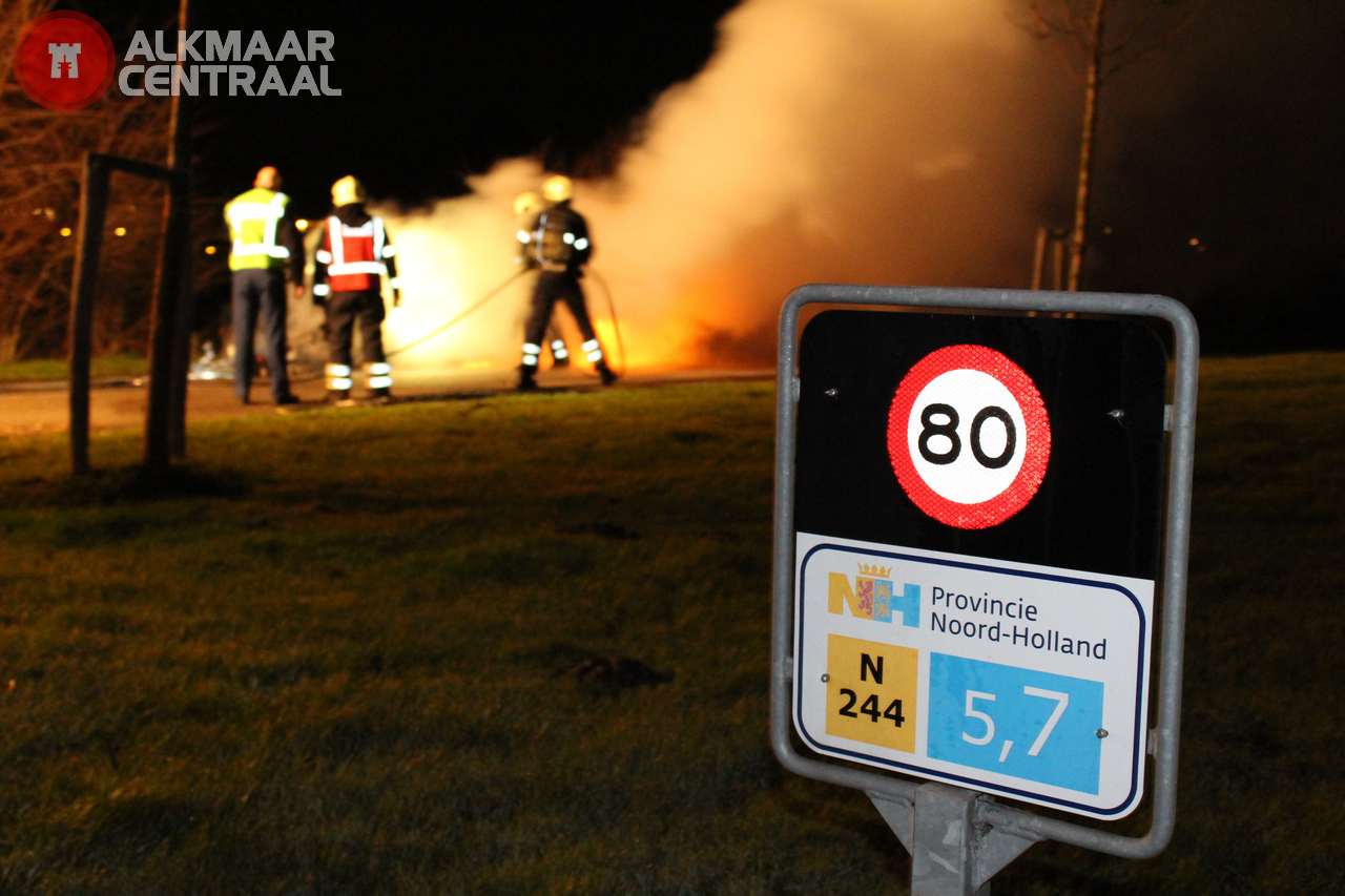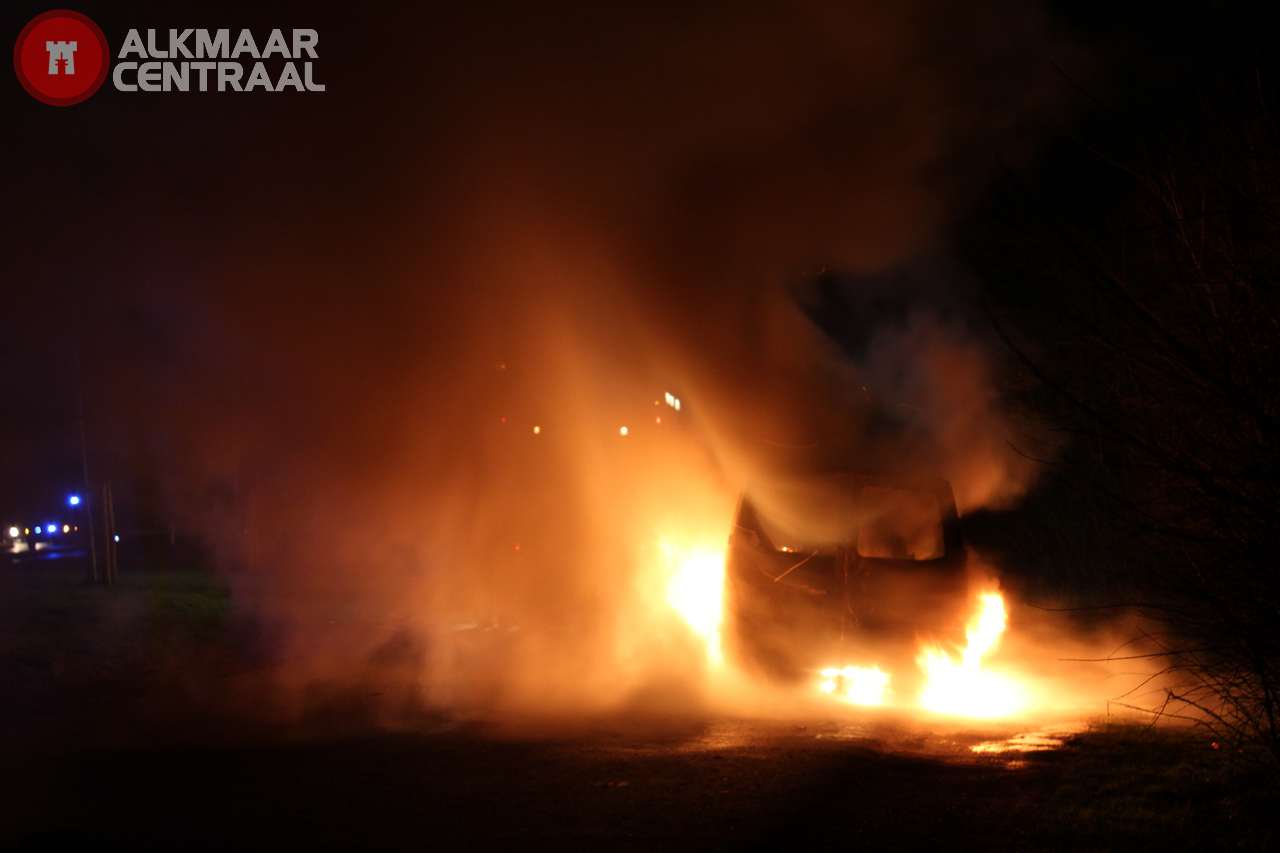 Alkmaar, 20 december 2013. In de nacht van donderdag op vrijdag hebben voorbijgangers tussen Alkmaar en Graft-De Rijp een brandende auto gevonden. Getuigen hadden kort daarvoor een witte BMW met hoge snelheid van de locatie langs de N244 (Westdijk) zien wegrijden. Toen de gealarmeerde brandweer ter plaatse kwam en begon met blussen, werd al snel duidelijk dat het om een achtergelaten en gestripte bestelbus ging. Onder andere de drie deuren ontbraken. De politie is op zoek naar getuigen of mensen die meer kunnen vertellen over deze voertuigbrand.