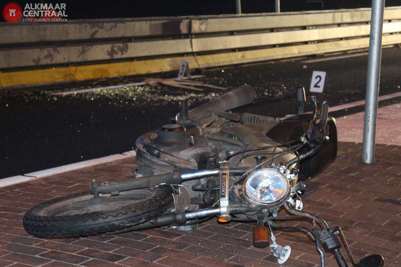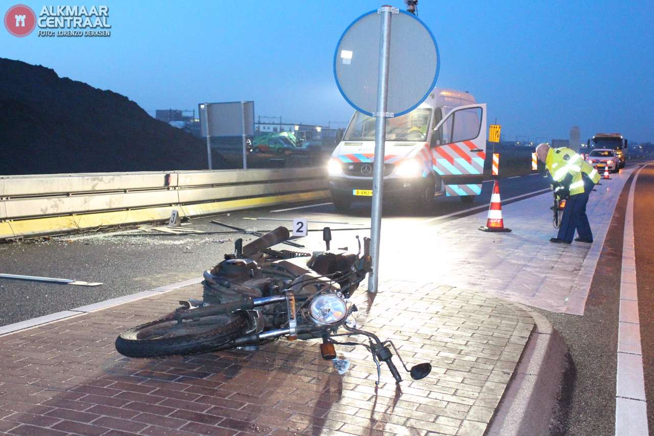 eerhugowaard, 03 februari 2014. Maandagochtend rond kwart voor zeven is een motorrijder gewond geraakt bij een aanrijding op de N242. Ter hoogte van Heerhugowaard, tussen de kruisingen met de Westangent en de Zuidangent probeerde een bestuurder van een bestelwagen over het verdrijvingsvlak heen zijn auto te keren. De motorrijder die uit de tegengestelde richting aan kwam rijden kon niet meer op tijd kon remmen en knalde tegen de zijkant van de bestelwagen. Hij raakte daarbij dusdanig gewond dat de opgeroepen ambulance hem met spoed naar het ziekenhuis bracht. De chauffeur van de bestelwagen is voor verhoor naar het politiebureau gebracht. Het sporenonderzoek en de berging namen tot 8:30 uur in beslag en veroorzaakte ernstige verkeershinder in Heerhugowaard. (foto's: DNP.NU/Lorenzo Derksen)