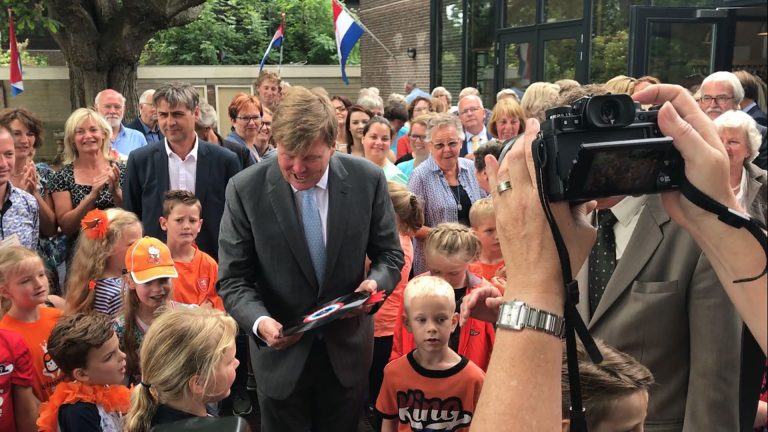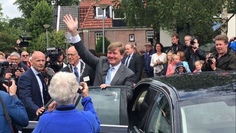 Willem-Alexander arriveerde vanochtend in Oudkarspel en werd daar enthousiast ontvangen door de inwoners van het dorp. De koning kreeg meteen een bos bloemen in zijn handen gedrukt. Een jong meisje overhandigde hem een tekening.