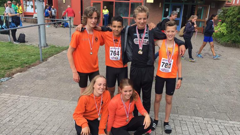 Jonge clubgenoten waren een dag eerder succesvol in Hoorn. Eerstejaars C-junior (JJC1) Jeff Tesselaar vestigde persoonlijke records op de 100m (12,70s), 100m horden (15,83s) en kogelstoten (11,31m), en een benadering bij het speerwerpen (32,81m). Alles goed voor goud. Tweedejaars C-junior (JJC2) Lars Philipsen greep met 2:10,01 op de 800m ook naar goud. Romello Christiaan (JJC2) werd in zijn 100m finale tweede dankzij een PR van 11,78s. Quincy Koeten (JJD1) sleepte goud en brons binnen. Hij evenaarde zijn hoogspringrecord van 1,45m en liep een dik PR op de 80m horden van 15,59s.